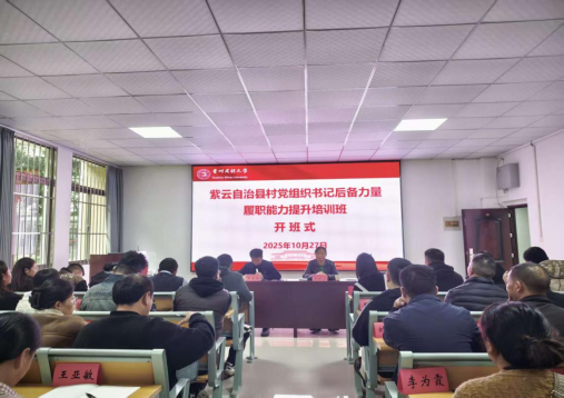 为进一步提升紫云自治县村党组织书记后备力量的政治素养、政策执行力和基层治理业务能力,10月27日—31日,紫云自治县村党组织书记后备力量履职能力提升培训班在贵州民族大学正式开班。来自紫云自治县各乡村的90名村两委干部参加此次培训。